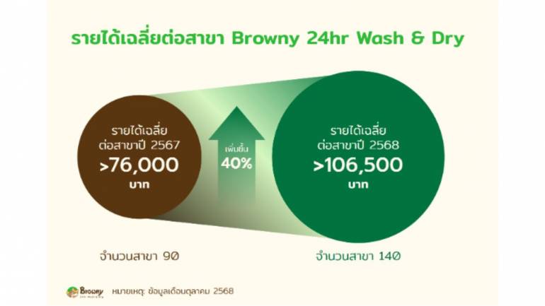 Browny 24hr Wash & Dry เผย รายได้จากบริการร้านสะดวกซักโตกว่า 40% สวนกระแสตลาดร้านสะดวกซักหดตัว พร้อมเดินหน้าขยายสาขาทั่วประเทศ