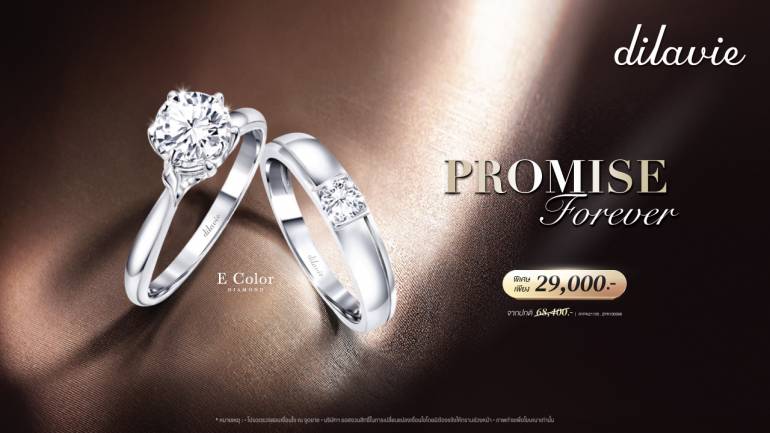 เพื่อเป็นการขอบคุณลูกค้าผู้ทรงคุณค่า Dilavie (ดิลาวี) จัดแคมเปญพิเศษให้คุณได้สัมผัสความหรูหราในราคาสุดพิเศษ แหวนเพชรรุ่น Promise Forever (รหัส RPJN24049 และ ZPR100087) พิเศษราคา 35,900 บาท จากปกติ 82,800 บาท และ แหวนเพชร รุ่น Promise Forever (รหัส RYPN21105 และ ZPR100036) พิเศษราคา 29,000 บาท จากปกติ 68,400 บาท