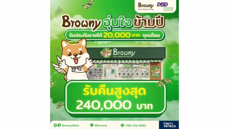 Browny 24hr Wash&Dry ชี้ตลาดสะดวกซักไทยยังเติบโต เสริมความมั่นใจนักลงทุนด้วยโปรแกรมการันตีคืนทุนสูงสุด 240,000 บาท ผลักดันลงทุนอย่างยั่งยืน